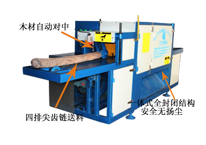 送 料:采用四排尖齒鏈條輸送,機(jī)上配有變頻智能調(diào)速器,可以對(duì)大小木料的進(jìn)料速度實(shí)行自由調(diào)速。原木可以實(shí)現(xiàn)自動(dòng)分中,機(jī)上還配有限位開(kāi)關(guān),防止超去規(guī)格木料進(jìn)入,防止卡木避免對(duì)機(jī)器造成損壞。