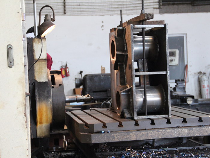 機械的整個主軸箱采用12厚的鋼板焊接成型